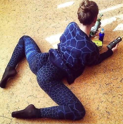 Through her leggings