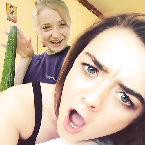 Her mouth opens for some purple meaty head, while taking the cucumber anally ;-)